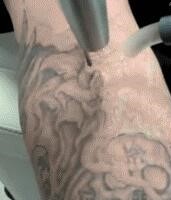 2、纹身的图案颜色较深,可以重复多次,不断变换光的波长。